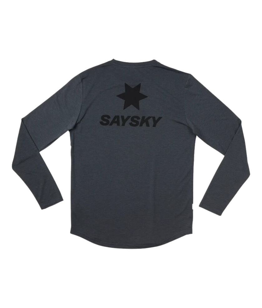 The SAYSKY Logo Motion Long Sleeve T-shirt is a long sleeve running shirt from the MOTION series. It is gray in color with a tonal classic SAYSKY logo printed on the back and a white SAYSKY logo patch on the front chest. Made of soft Tencel material mixed with polyester, the product is comfortable like cotton, but has excellent performance. Casual fit design and lightweight comfort. Not only can it be used for workouts and running, but it can also be used as everyday wear.