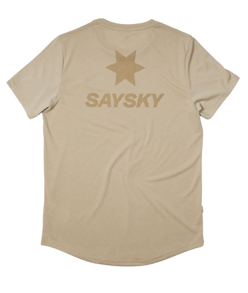 The SAYSKY Logo Motion T-shirt is a short sleeve t-shirt from our Motion series. It comes in the color beige and features a woven SAYSKY logo on the front and a classic one on the back. It is made in soft Tencel mixed with polyester, resulting in a very comfortable performance product. The t-shirt has a casual fit and a light feel, which is perfect for workouts, running and everyday wear.