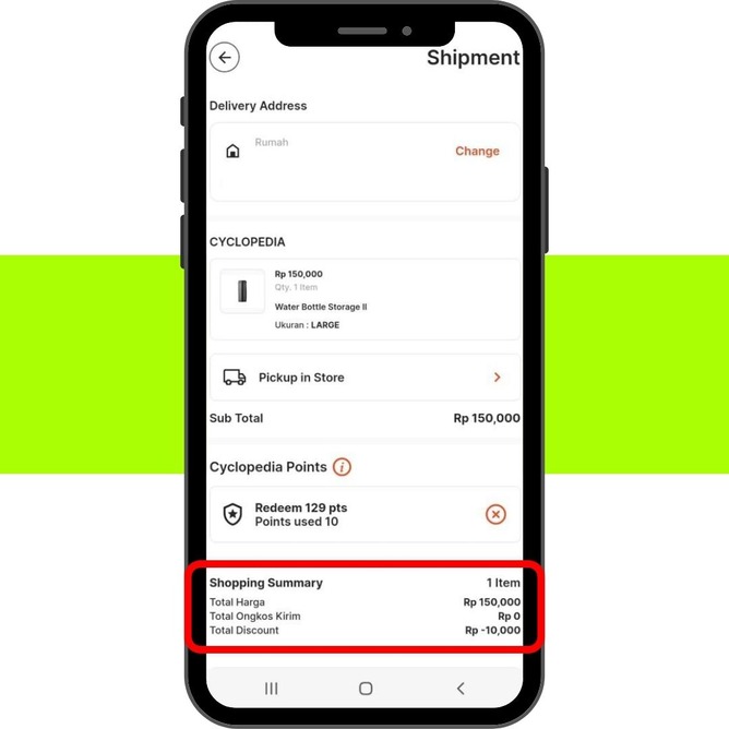 Potongan diskon Cyclopedia Points berhasil digunakan! Potongan sesuai dengan jumlah point yang kamu redeem akan langsung mengurangi jumlah tagihan kamu.