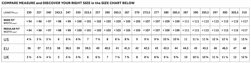 • Sizes: 36-48 (37 to 47 also in half sizes).